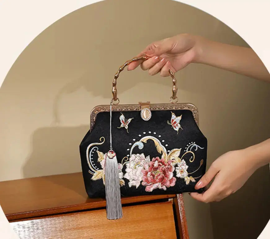 Elevate your style with our exquisite Chinese-style Qipao Handbag, a stunning accessory that embodies elegance and sophistication. This beautifully crafted handbag measures 20.5cm x 8cm x 17cm, making it the perfect size for daily use.