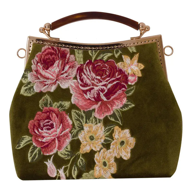 Made from high-quality embroidered fabric with a polyester texture, it combines durability with a touch of luxury. The handbag features a secure lock opening, ensuring your belongings are safely tucked away while you make a statement wherever you go.
