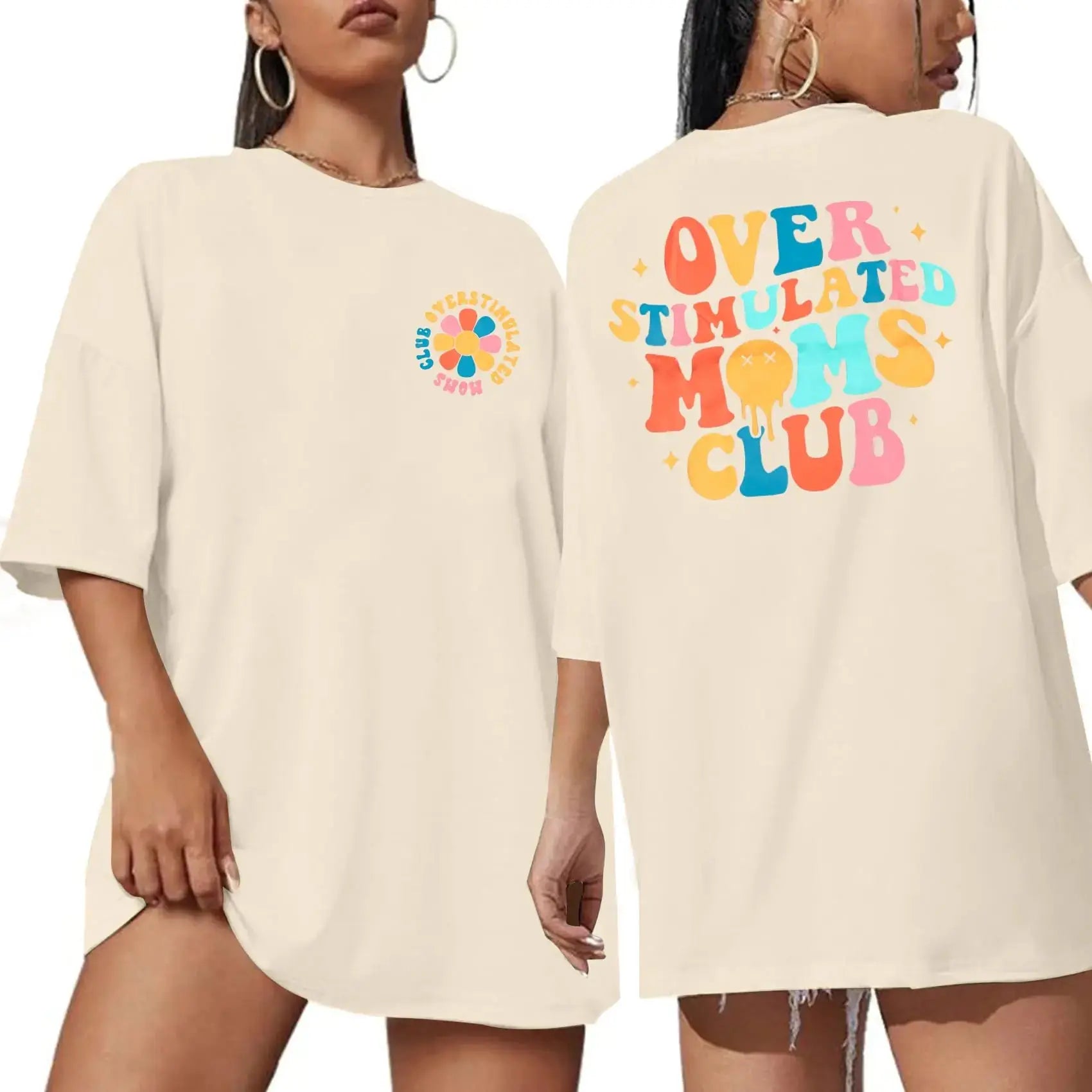 [Material: This oversized mom club shirt is made of cotton blend. Fabric is very breathable very soft and comfortable. Feature: Overstimulated moms club shirt oversize mom shirt overstimulated moms club tee shirt overstimulated moms tshirt moms club shirt for moms moms club shirt cute graphic tee short sleeve top suit for summer and fall. Gift: Suitable for mothers and female friends around. Best gift for yourself mom wife aunts grandmas maternity friends and more. Match: Easily pair with shorts long pants jeans white shoes boots and etc. it is a good choice for daily wear shopping sports travel and parties etc Notice: There are five sizes can be selected(S/M/L/XL/XXL).Please double check product measurement before ordering to ensure accurate fitting thanks.]