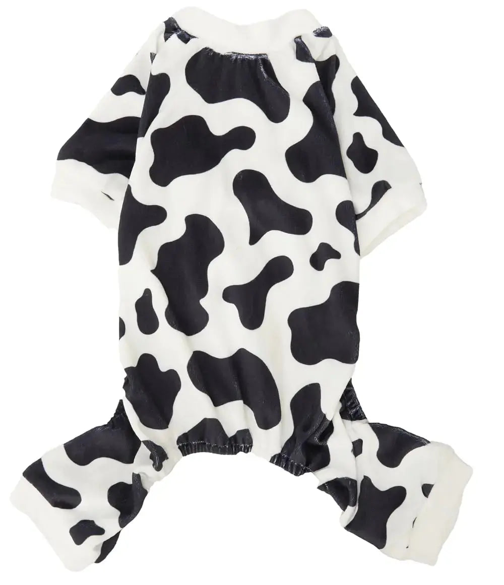 Regular price $110.09 Sale price $65.99[Stylish and Fun Design:] Adorned with a black-and-white cow print, adding a playful and unique touch to your pet's wardrobe. [Soft and Comfortable Material:] Made from a cozy, lightweight velvet fabric that ensures your dog stays comfortable during wear, perfect for lounging or sleeping. [Practical Design for Convenience:] Full-Body Coverage design that can fully wrap your pet's neck, chest, and belly snugly. The pullover design makes it easy to put on and take off. Features a rear opening that allows pets to use the bathroom without restrictions, making it functional and hassle-free for daily wear.[Ideal for Post-Surgery Recovery:] Provides complete coverage to protect incisions and promote healing. At the same time, the stretchy fabric ensures mobility is not restricted, making it suitable for dogs recovering from surgery. Also, this dog onesie helps reduce shedding and keeps the home clean. Resistant to deformation and durable for washing. Easy to wash and dry, they do not shrink when dried on a gentle setting. Suitable for Bull Dog, Labrador Retriever, Golden Retriever, German Shepard, Rottweiler, medium or large dogs.