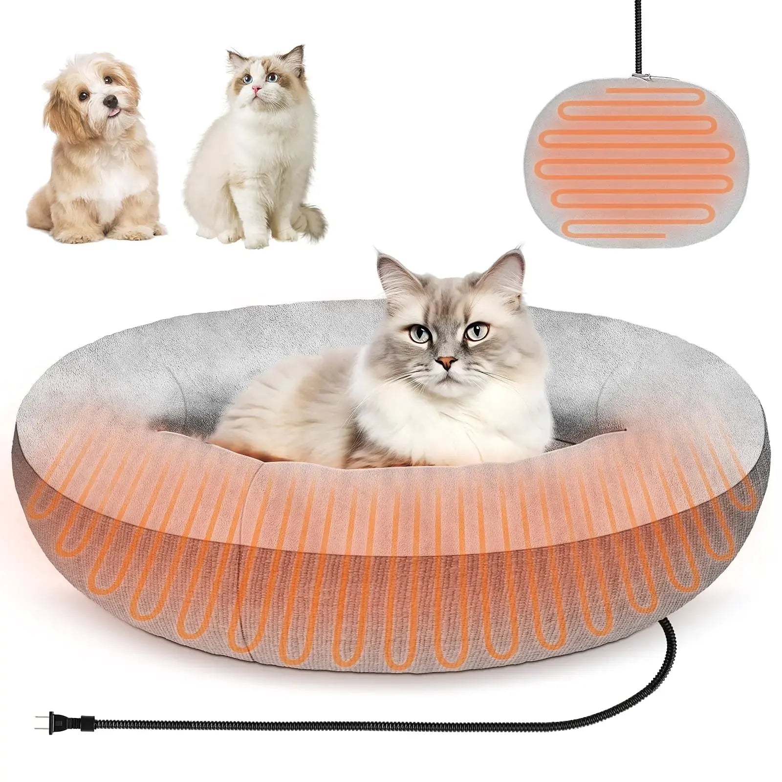 Regular price $224.07 Sale price $148.98["Comfortable Warm Experience: This heated cat bed is designed specifically for indoor cats and small dogs, offering your pets a constant comfortable warmth. Whether it's the cold winter or a damp night, you can confidently let them peacefully sleep on this winter pet bed, enjoying a cozy afternoon." Safe Heating Technology: Our electric heated cat bed features safe, constant-temperature heating technology to prevent overheating, ensuring your kittens and small dogs stay safe and comfortable while using it. Additionally the materials used comply with pet safety standards containing no harmful substances providing a secure resting environment for your furry friends Versatile Applicability: Whether your pet is a kitten a Scottish Fold cat or a senior cat this pet bed suitable for small animals provides the perfect resting space. Its user-friendly design is especially ideal for older cats who need extra warmth and for kittens who require a cozy spot to curl up making it the ultimate heated cat bed for Scottish Folds "Convenient Cleaning and Maintenance: The materials used in this easy-to-clean cat bed are designed for simple washing and maintenance. The removable cover makes it easy to clean up pet hair and dirt, ensuring your pet's resting space stays fresh and hygienic.